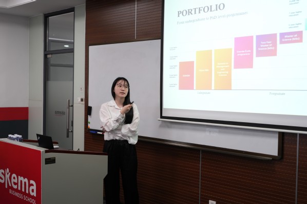 学生服务部门经理邓博老师重点介绍了SKEMA商学院完善的国际学生支持体系,涵盖语言提升、生活服务、文化适应指导、心理辅导等多方面,提升了学生的未来留学信心。