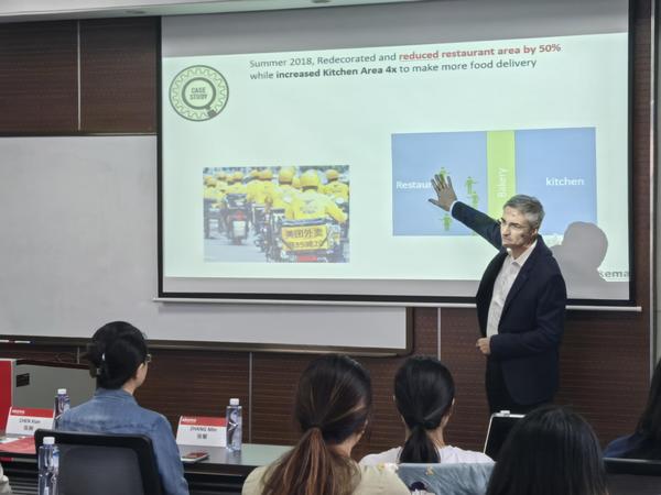 第二天上午,法方教授David Dufour为大家带来了“商务管理信息系统”专业课程。通过案例讲解、模型解构、数据分析等方式,原本抽象的专业概念变得直观易懂,也让学生对海外合作高校的授课模式有了进一步的了解。