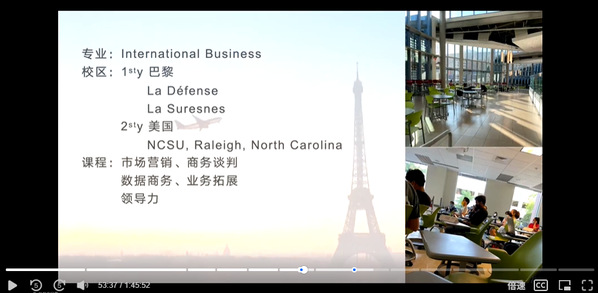 11月6日晚上,我校国际交流合作处与国际交流学院为法语商务专业学生组织了一场留法优秀校友分享交流会。本次交流会由法国项目合作方邱老师主持,三位优秀留法校友 Chris、王韵楠、谷晟芊结合自身在法国SKEMA商学院的留学经历与职业发展历程,为与会学生带来了一场干货满满的分享,为未来有意向赴法进一步深造的同学们点亮了前行的方向。