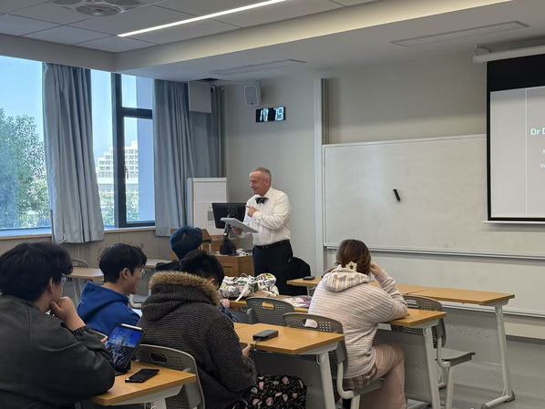 课程中,Watson教授以一块普通“砖头”为案例,引导学生以创新和市场思维进行小组讨论,并通过展示环节构思其商业化可能。他以简洁清晰的方式呈现英式小班教学的特点,强调讨论式学习在激发思考与提升协作能力方面的重要作用。案例分析帮助学生理解学术训练与未来职业发展的关联,也使大家对英国高校的教学模式有了更具体的认识。海外院校示范课的开展为学生提供了了解海外课堂的实践契机,也进一步深化了我校与海外大学的多形式交流。
