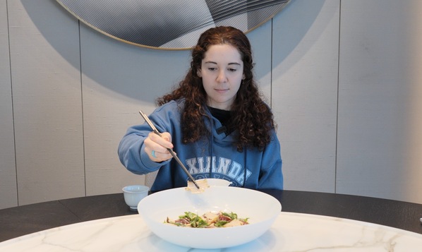 西班牙外教Maya带着家乡伊比利亚火腿走进上海老字号后厨,将西式风味与经典本帮菜“上海小鲜”创意融合。她认真观摩大厨工序,亲手实践、细致记录,当薄如蝉翼的火腿片铺在热气腾腾的上海小鲜上时,她赞叹道:“我的家乡味道与上海味道在这一刻相遇。”这道中西合璧的菜品,成为东西方文明互鉴的生动注脚。
