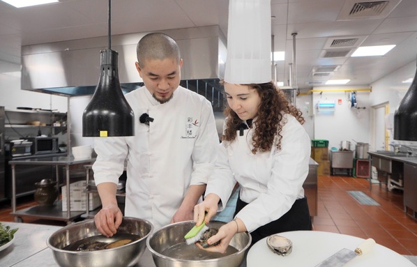 法语外教Youri现场学做经典本帮菜清炒虾仁,在了解到“虾仁”上海话发音与“欢迎”谐音后,他由衷感慨:“原来我做的不只是一道菜,更是一份对品尝者‘欢迎回家’的深情问候。”从味蕾好奇到情感共鸣,实现了跨语言、跨文化的深度理解与心灵相通。